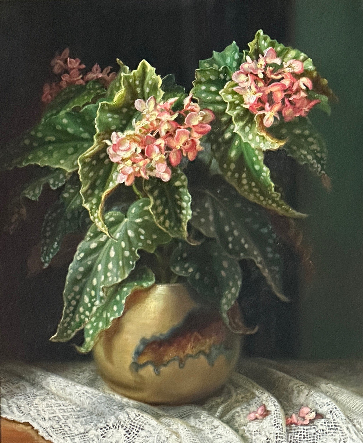 “A Simple Begonia” Original Oil on Linen 61cm x 51cm by ARC Living Artist Ann Morton
