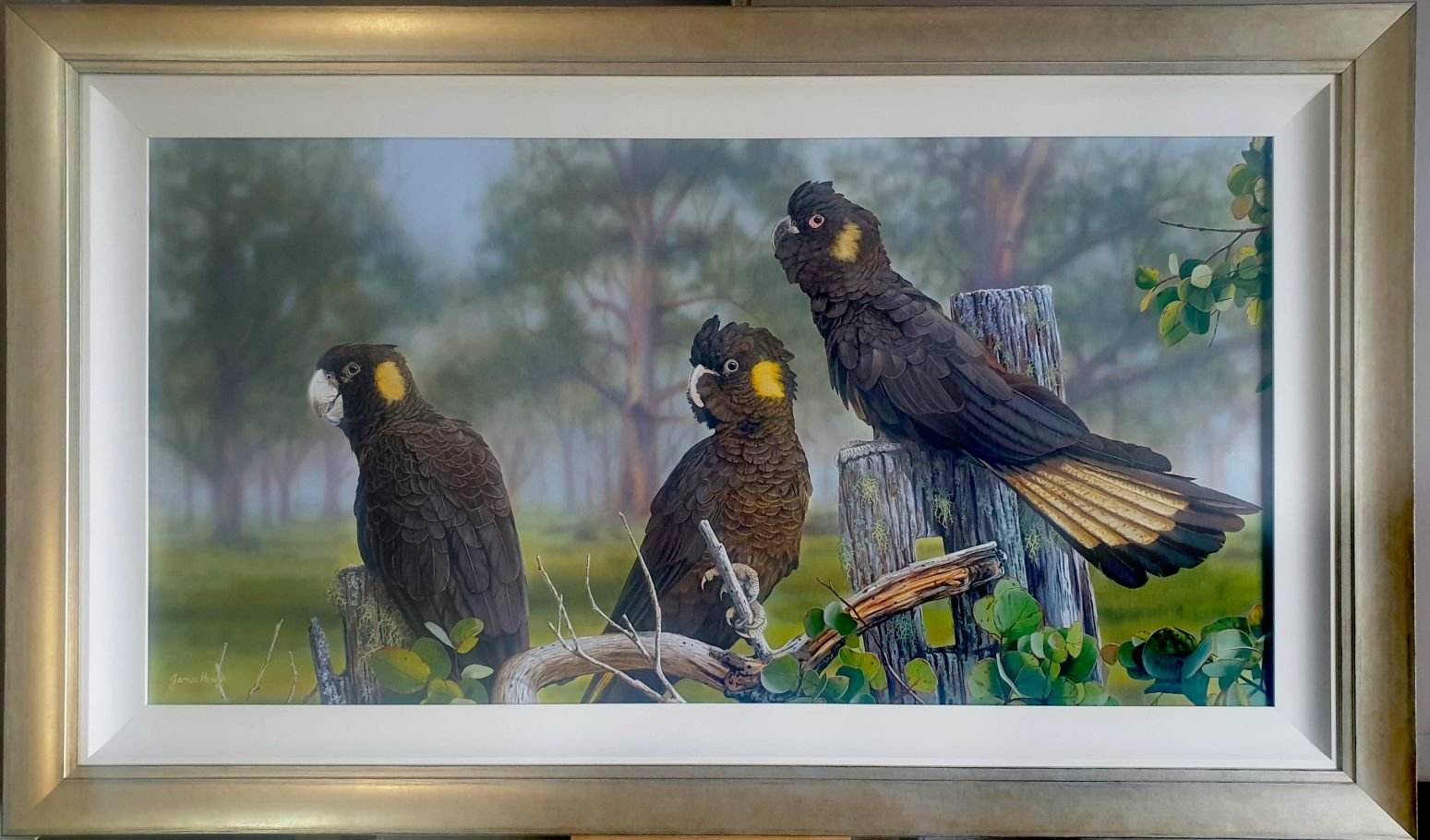 Calls from afar (Yellow Tailed Black Cockatoos) Original Acrylic on canvas 120cm x 62cm