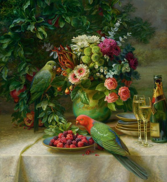 When viewing an Ann Morton painting one soon realizes that the artist has created a work of quality and exquisite beauty. Demand for Ann’s work has increased dramatically over the past few years through solo and joint exhibitions in private and public galleries, along with commissions from corporate and private collectors. Concentrating on still life since basing herself in the country, Ann has however had the distinction of being a finalist in the prestigious nationally recognized Archibald Portrait Prize. Public acclaim also resulted when her self-portrait was voted one of the top two in the ‘People’s Choice Award’. Further recognition came as a finalist in The Sporting Portrait 2000 (or ‘Sporting Archibald’), which saw her work exhibited in the N.S.W. Art Gallery, the National Portrait Gallery in Canberra, and Regional Art Galleries throughout the country.