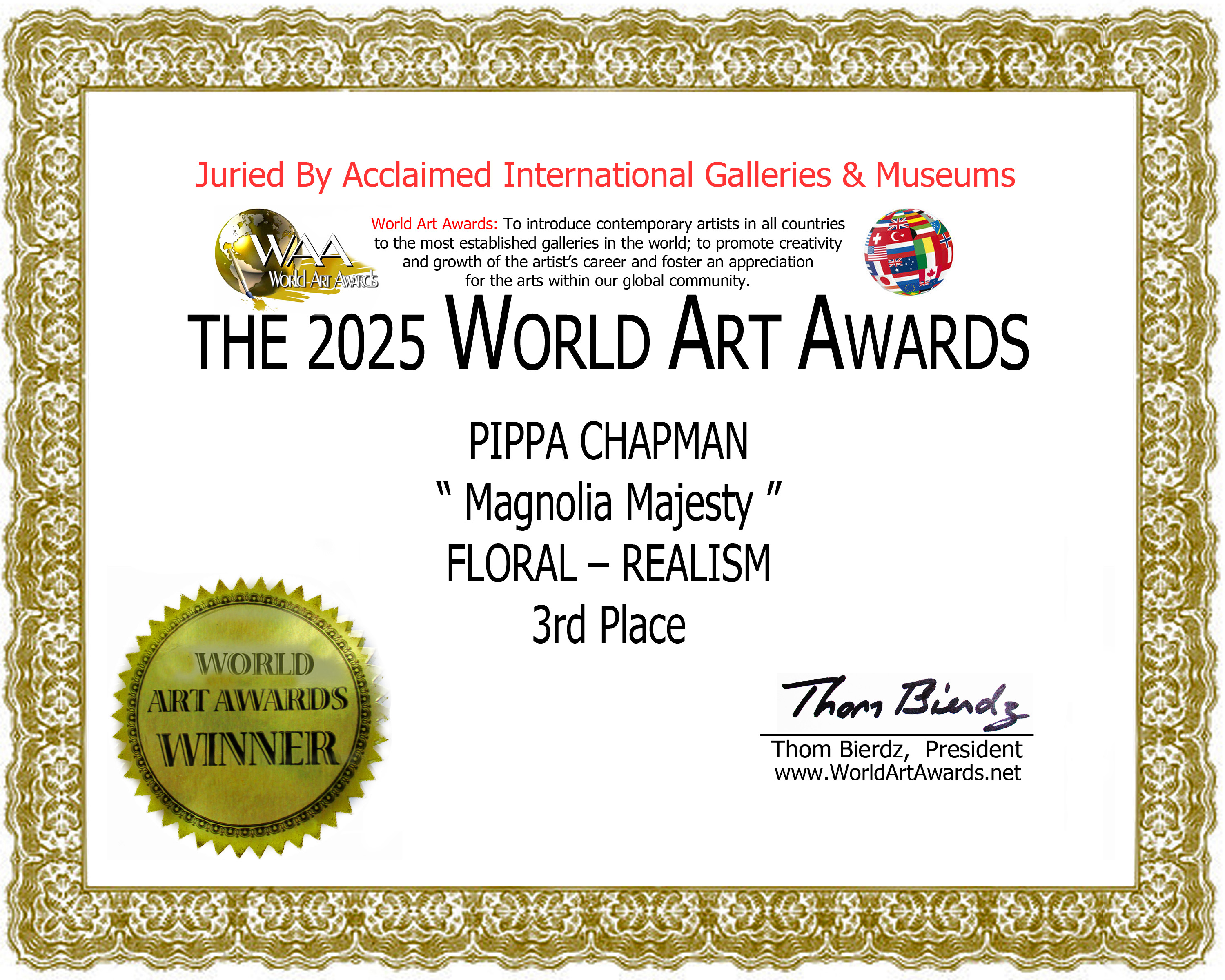 With over 30+ years painting experience and over 100 awards and exhibitions both in Australia and internationally, Pippa promotes and dedicates herself to the Old Master realistic techniques of art.