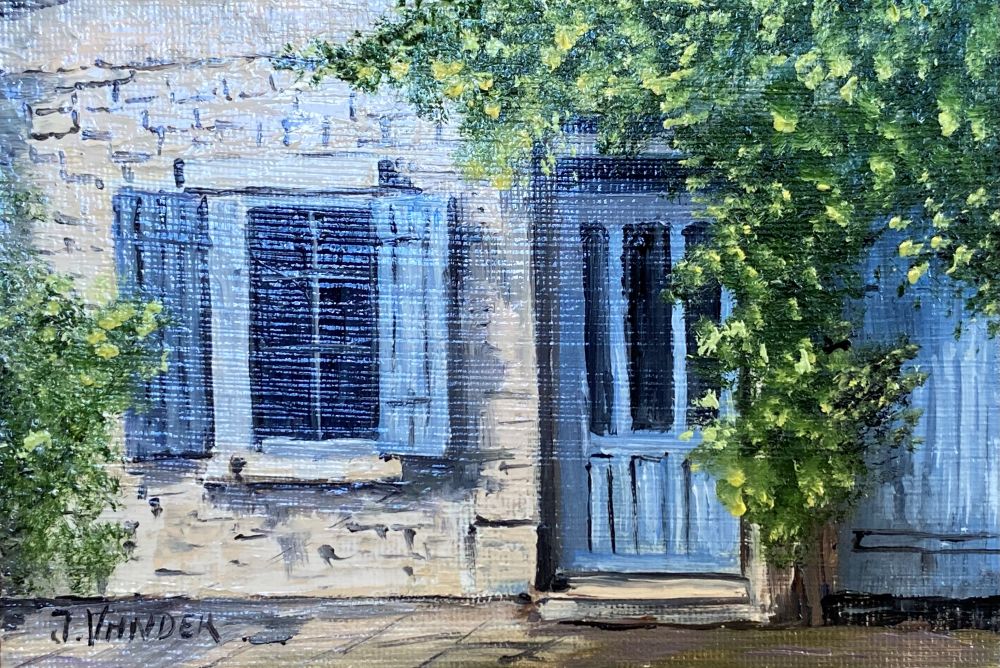 The Blue Shutters Original Oil on Board Mini 15cm x 10cm