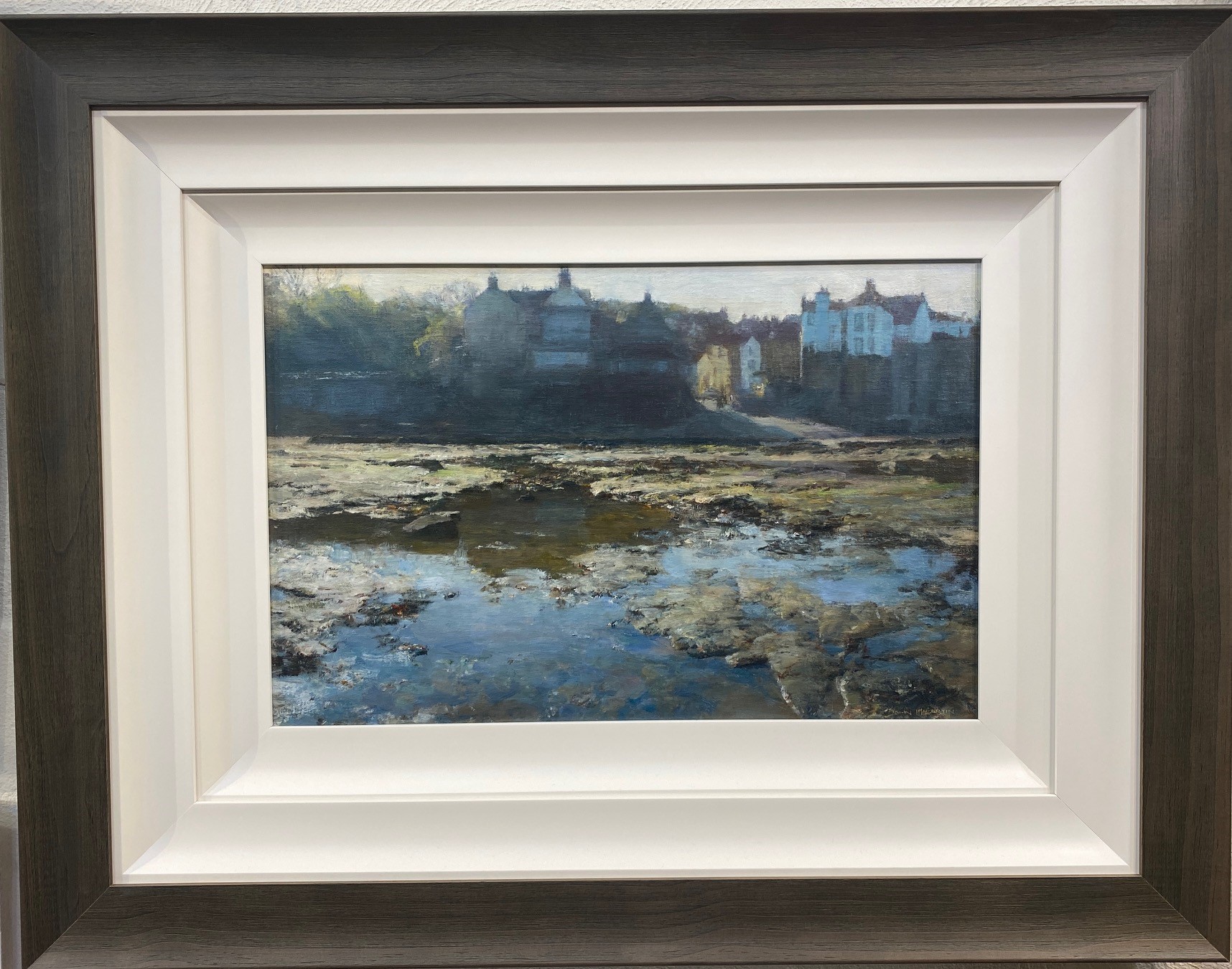 John saw the day in at 6am to be plein air painting before breakfast. He painted down near the Beck (stream or brook), so by the time I rose at 8am with breakfast booked at 9am John had 3/4 finished a painting. Best one so far. I see his use of colour much better. By 11 am we are on the road to Whitby. Park & Ride is the advice given, but as photographers that seems so unsuitable (though I have to admit we have been caught in Bath … that certainly was a place one needed to park and ride) so we decided to get a feel of the place first. We took a few shots from the Staithes side of Whitby then drove to the industrial side. Looking across the bay was quite nice, so we took a few shots from there, then we were happy to keep following the coast towards Scarborough. Not far out of Whitby we saw the “Abby” … quite a beautiful building. So, John drove around for a bit while I took photos. He’s never been inclined to take photos of nice beautiful buildings until he sees my photos …. then he paints from them! I think they should pay me to come & take the photos & John just paint!! So, as we meandered along, we saw the sign to Robin Hoods Bay. Being only two and a half miles from it, we thought perfect! And perfect it turned out to be!! The quaintest village. One of the reasons we chose Whitby was to avoid the steep hills for a day… a..hmm! Robin Hood Bay is just as steep (not quite) as Staithes. There seemed to be two main streets, so we ended up walking up & down the steep hills twice. Got some nice shots … though better on John’s camera. But a magical day! “Life is not measured by the number of breaths we take but by the moments that take our breath away” (written on one of the seats) …. how true! Especially (puff puff) as I walked up the absolute steep hill to catch John on the other side … ’twas truly invigorating. Fish & chips for tea at the “Fish Box”. Best fish & chips in the area I think. And way too much. Enough for a meal tomorrow night! Exhausted yet exhilarated we travelled home … approximately half an hour drive with the sun just going down at 8.44pm … still twilight ‘til 10pm.