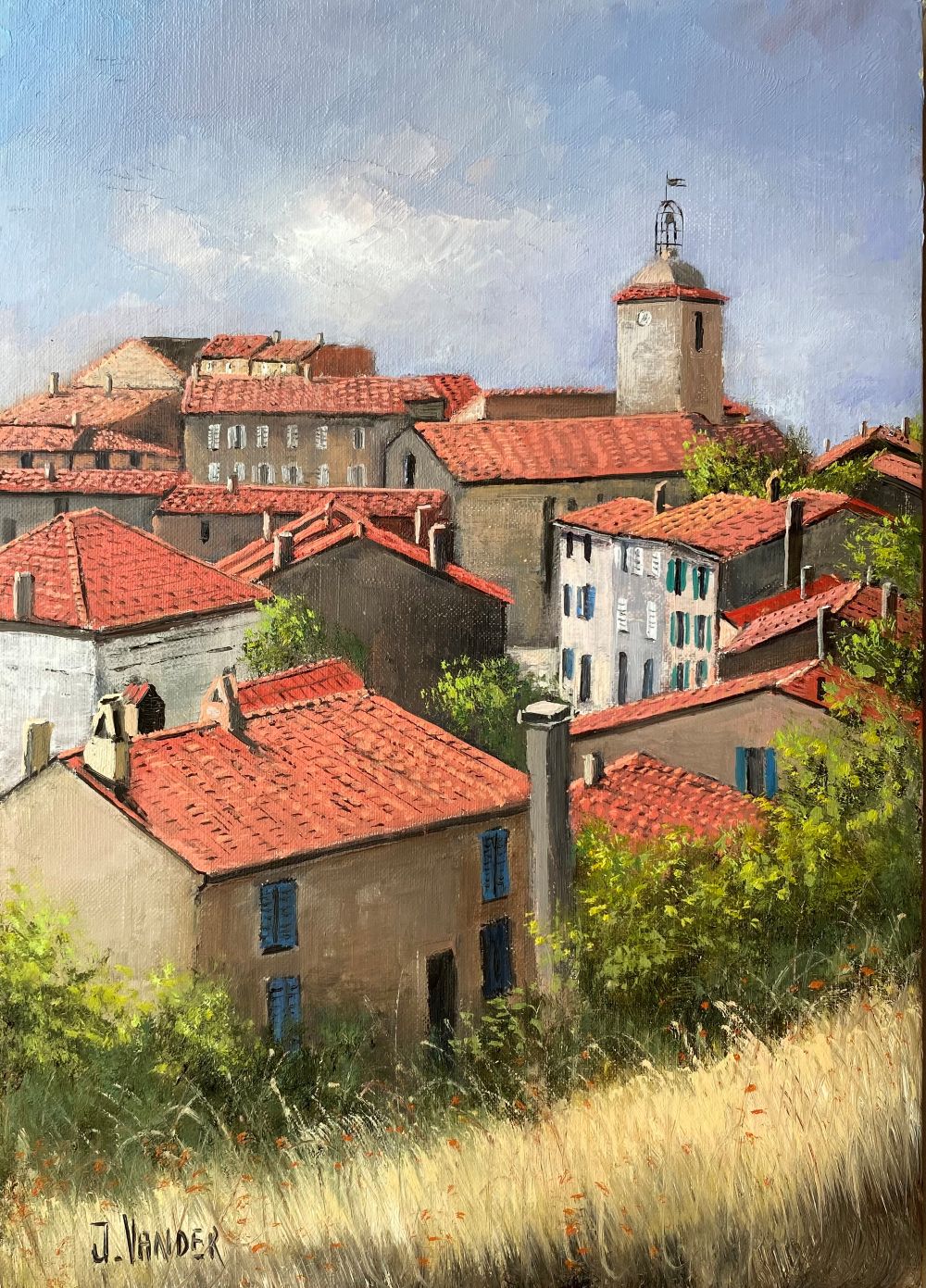 John’s Inspiration: “This painting of the Provencial Village of Ramatuelle is the result of a family holiday in Provence. We fell in love with this beautiful village. We attended its famous Farmers Market and ate in one of its friendly local restaurants. The village is situated high up in the mountains near St Tropez, it has a long past and its narrow streets and buildings were a protection against potential aggressors.”