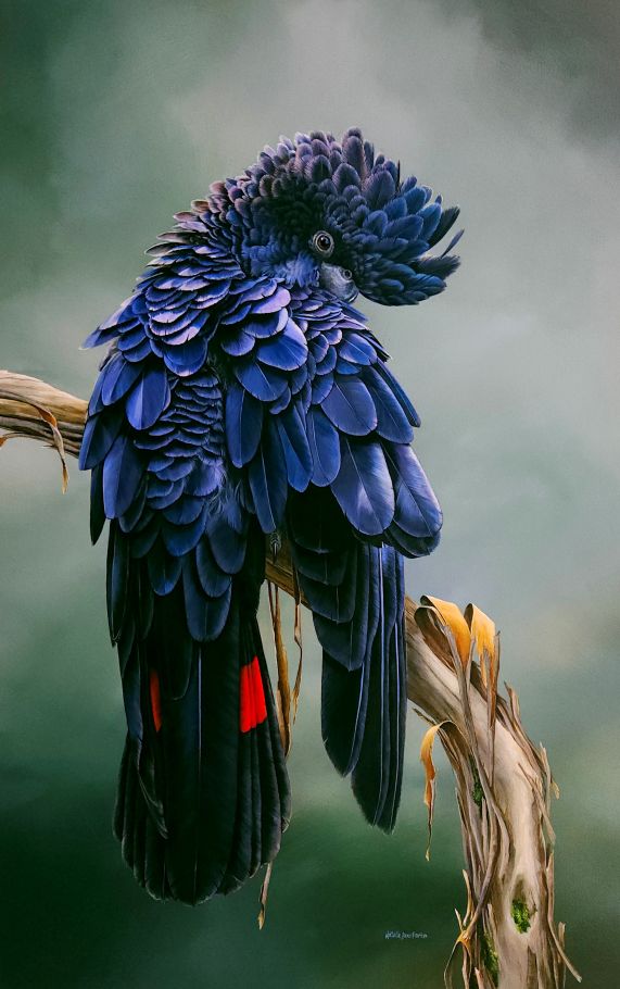My vision for this painting is to raise awareness for Red-tailed Black Cockatoos and to educate through my art…. to start a conversation about embracing the beauty of nature and habitat conservation, then in turn celebrating it!