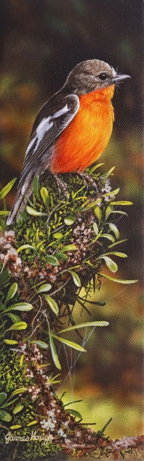 Winter Spark (Flame Robin) Original Acrylic on canvas 10cm x 30cm – SOLD